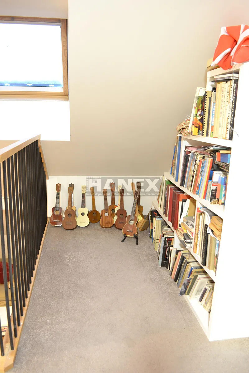 Druhá úroveň zahrnuje dvě hlavní místnosti: jednu plnohodnotnou ložnici a galerii vhodnou jako pracovna. Celková podlahová plocha této úrovně je 43,8 m².