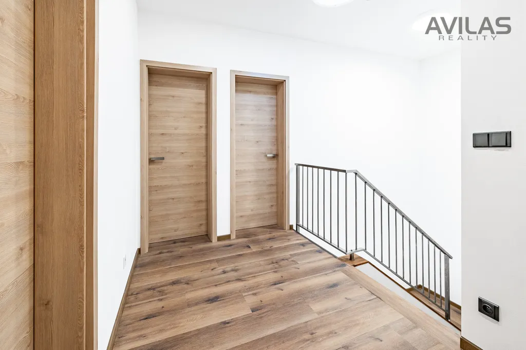 Dispozice 2.NP: pokoj 15,44 m2, pokoj 15,55 m2, ložnice 17,89 m2, šatna 4,95, pracovna 12,15 m2, koupelna 6,71 m2, wc 1,76 m2, chodba 9,15 m2, schodiště 4,76 m2.