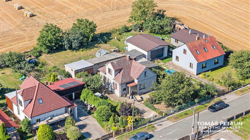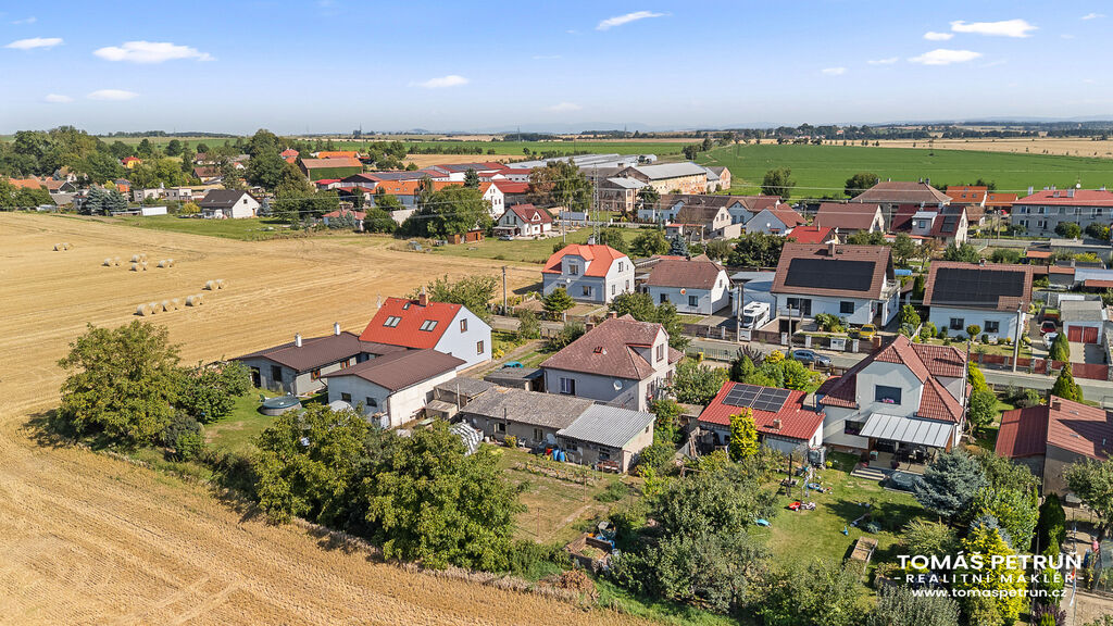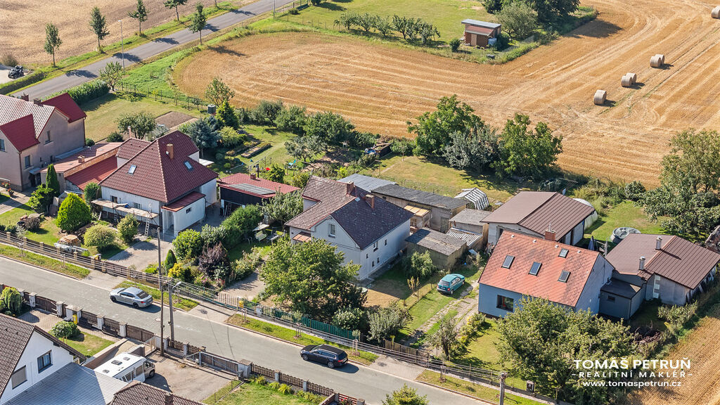 Užitná plocha domu je cca 103 m² + sklep. Výhodou předpokládané rekonstrukce je možnost dohlížet na kvalitu a provedení zednických prací. Dům stojí na klidném místě obce, ve slepé ulici. Voda je k dispozici z obecního vodovodu. Vytápění a ohřev vody zajišťuje elektro - kotel. Nájezd na dálnici D11 se nachází ve vzdálenosti cca 2 km od domu. Do města se lze dostat pravidelnou autobusovou linkou.