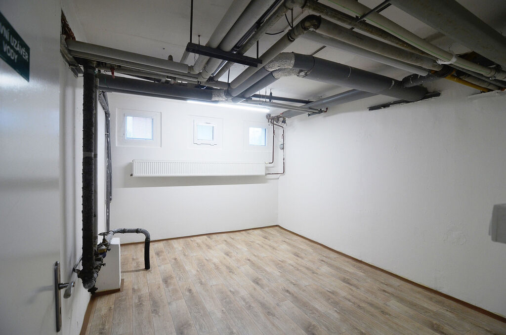Pronájem nebytového prostoru o velikosti 64 m² v 1. PP podlaží panelového domu v Praze 4 - Kamýku. Prostor má dvě velké místnosti s menšími okny, jednu menší s kobercem a vestavěnou stěnou s úložnými prostory, koupelnu s WC a sprchovým koutem, kuchyňský kout.