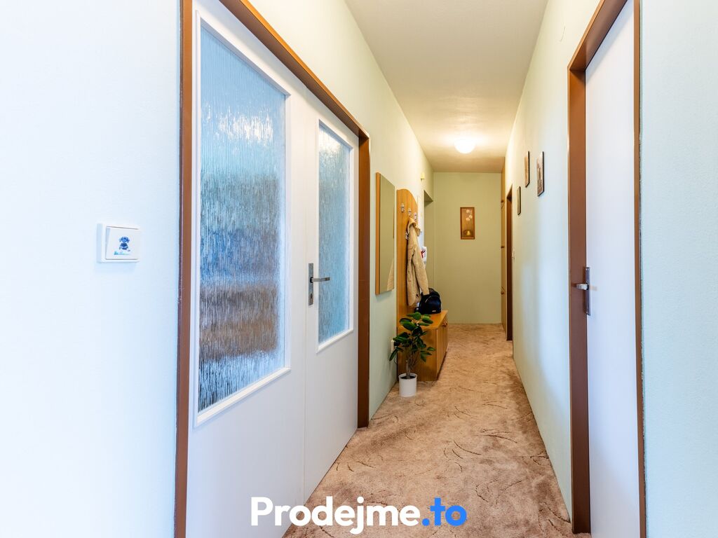 Byt se nachází ve druhém nadzemním podlaží bytového domu bez výtahu a poskytuje dispozici 3+1 o užitné ploše 78 m2. Je tvořený obývacím pokojem s výklenkem, který díky velkým oknům a vstupu na balkón krásně prosvětluje celou místnost. Kuchyně je od obývací zóny oddělená příčkou uprostřed místnosti, za kterou se nachází ideální prostor pro jídelní stůl. Kuchyňská linka je v dobrém stavu a zůstane v bytě novým majitelům včetně plynového sporáku. V bytě najdete dále prostornou chodbu propojující byt se všemi místnostmi, ložnici, dětský pokoj, koupelnu s vanou a samostatnou toaletu. Příjemnou teplotu v bytě i během horkých letní dnů zajišťuje klimatizace umístěná v obývacím pokoji.