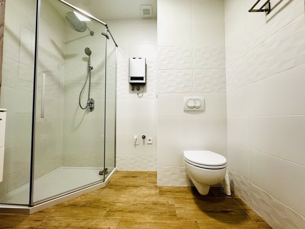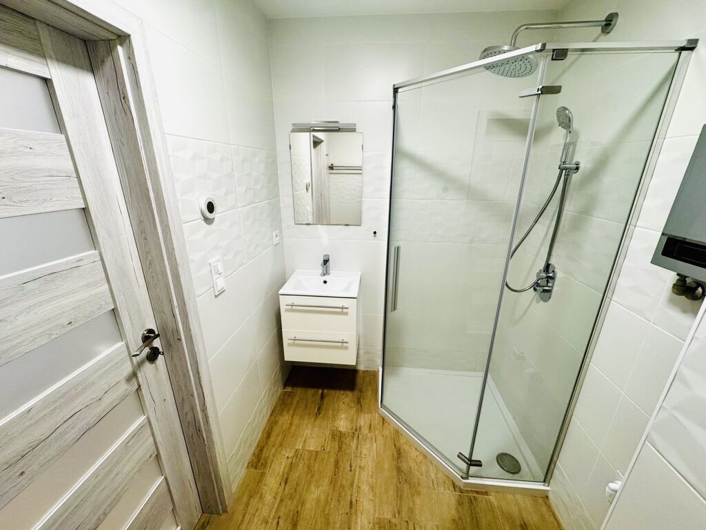 Součástí rekonstrukce je nová kuchyňská linka se spotřebiči, moderní koupelna s umývadlem, sprchou, wc, přípravou na pračku a podlahovým topením.