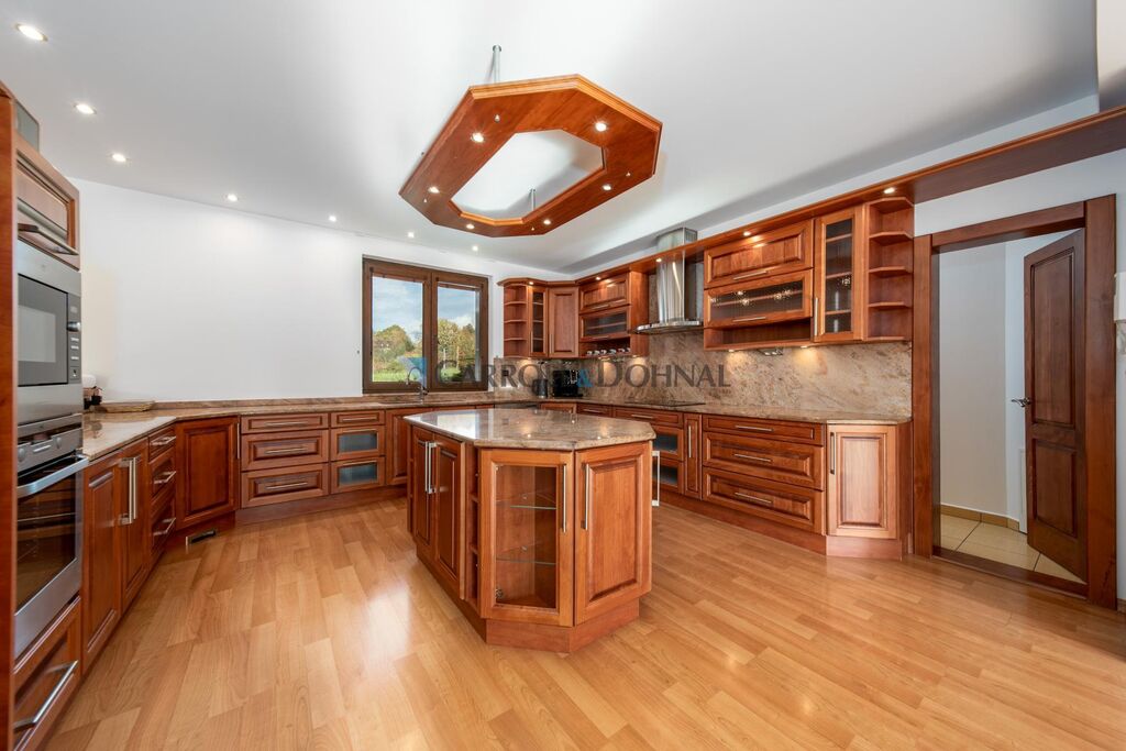 Otevřete dveře a přivítá vás prostorný obývací pokoj s krbem, s kuchyní, která poskytne dostatek místa pro společné vaření, pečení. Je to srdce domova, kde se potkávají chutě, vůně a rodinné tradice. Rodinná setkání nebo klidné večery s knihou, teplo ohně v krbu vytváří neodolatelné kouzlo i když za okny vládne mráz. Prosklený prostor zimní zahrady vytváří harmonické propojení interiéru s okolní přírodou.