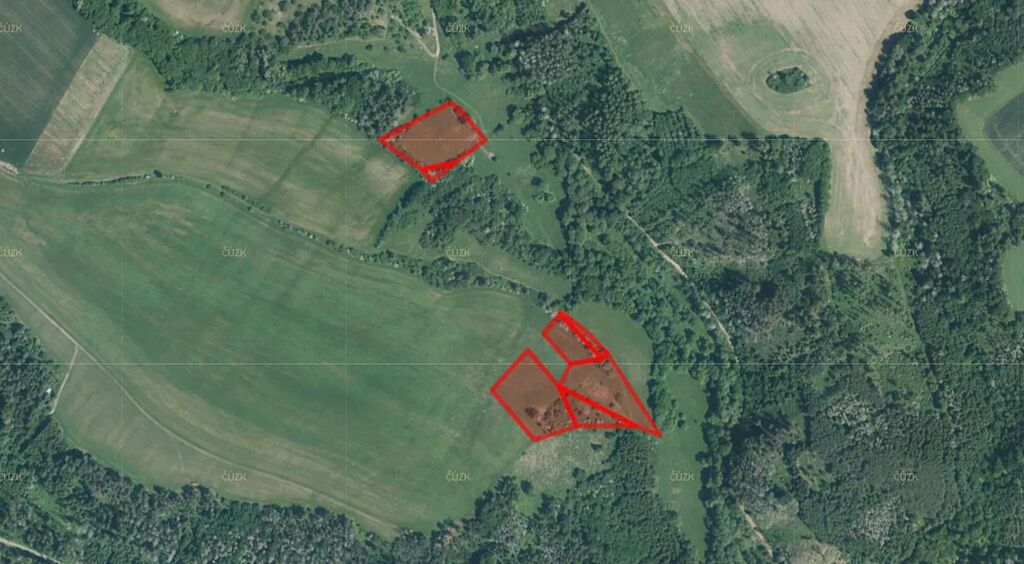 Pozemky mají celkovou výměru 37 840 m², z toho výměra odpovídající prodávanému podílu činí 18 920 m².