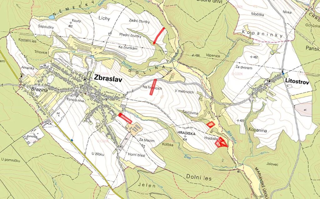 V katastrálním území Zbraslav na Moravě, okres Brno-venkov, nabízím k prodeji spoluvlastnický podíl 1/2 na souboru zemědělských pozemků. Všechny parcely jsou zapsány na listu vlastnictví č. 907.