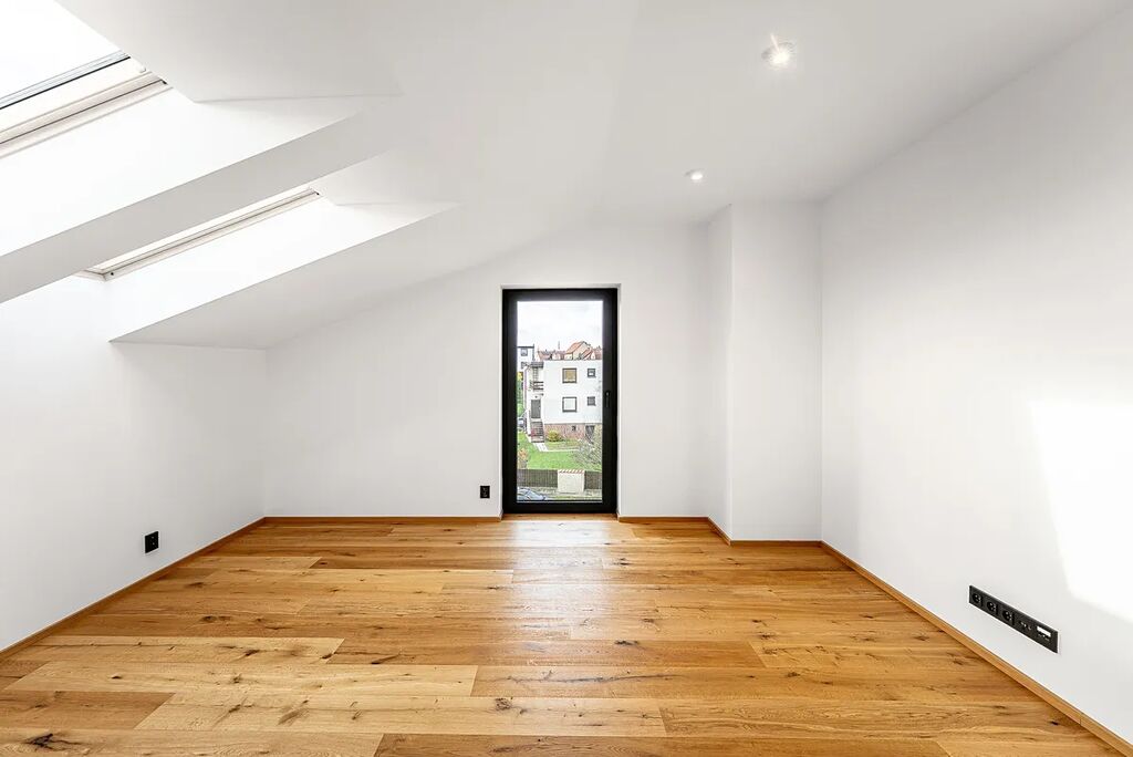 Horní patro lze snadno přetvořit na samostatnou bytovou jednotku, což nabízí elegantní řešení pro vícegenerační bydlení, samostatný pronájem nebo oddělenou zónu pro dospívající děti.
