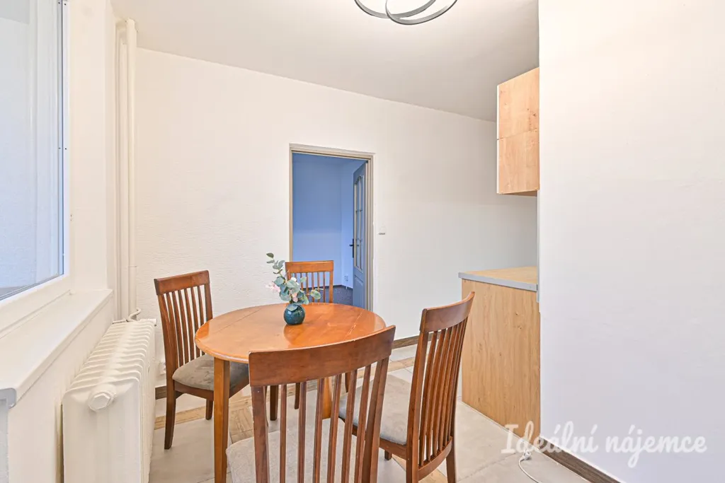 Jedná se o částečně zařízený byt. Vybavení zahrnuje kuchyňskou linku s plynovým sporákem, troubou, digestoří, lednicí a jídelním stolkem se židlemi.
