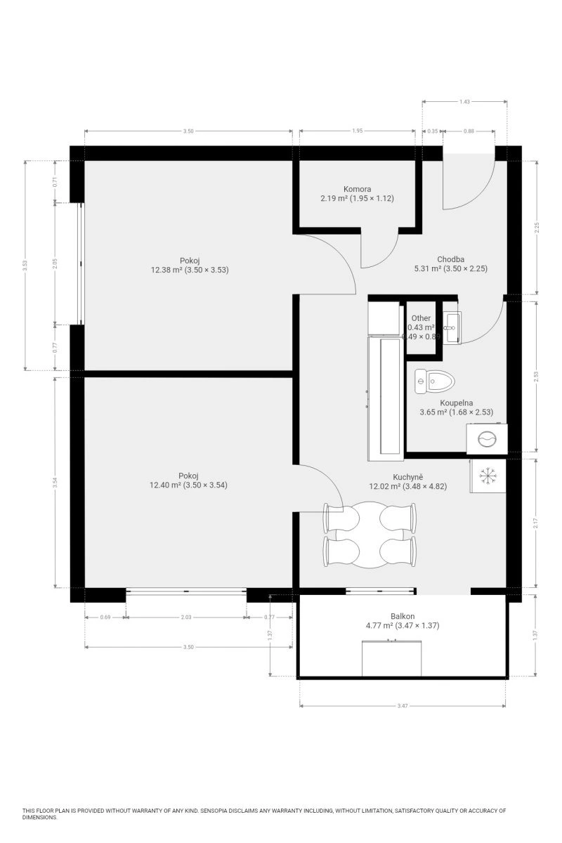 Byt zahrnuje sklepní kóji o velikosti 1 m2.