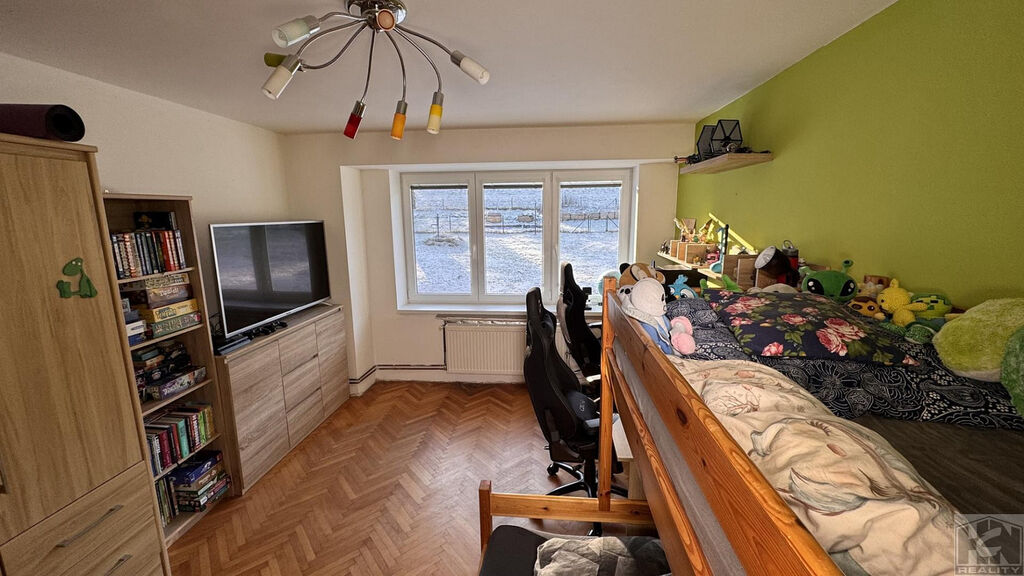 Tento byt je umístěn v 1. NP a sestává ze dvou pokojů, obývacího pokoje s kuchyňským koutem, předsíně, koupelny, samostatné WC a prostorného sklepa na kola, lyže ( 7 m²) a prostorná půda.