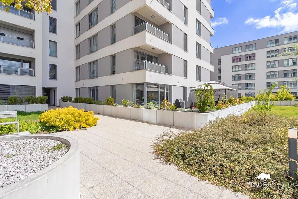 Byt se nachází v přízemí nového bytového komplexu doslova pár metrů od Chodského náměstí. Velkou předností je opravdu velká terasa (67 m2), která je přístupná z každé místnosti. Oceníte i garážové stání, kde si dveře rozhodně neodřete. Je totiž širší než standardní garážová místa.