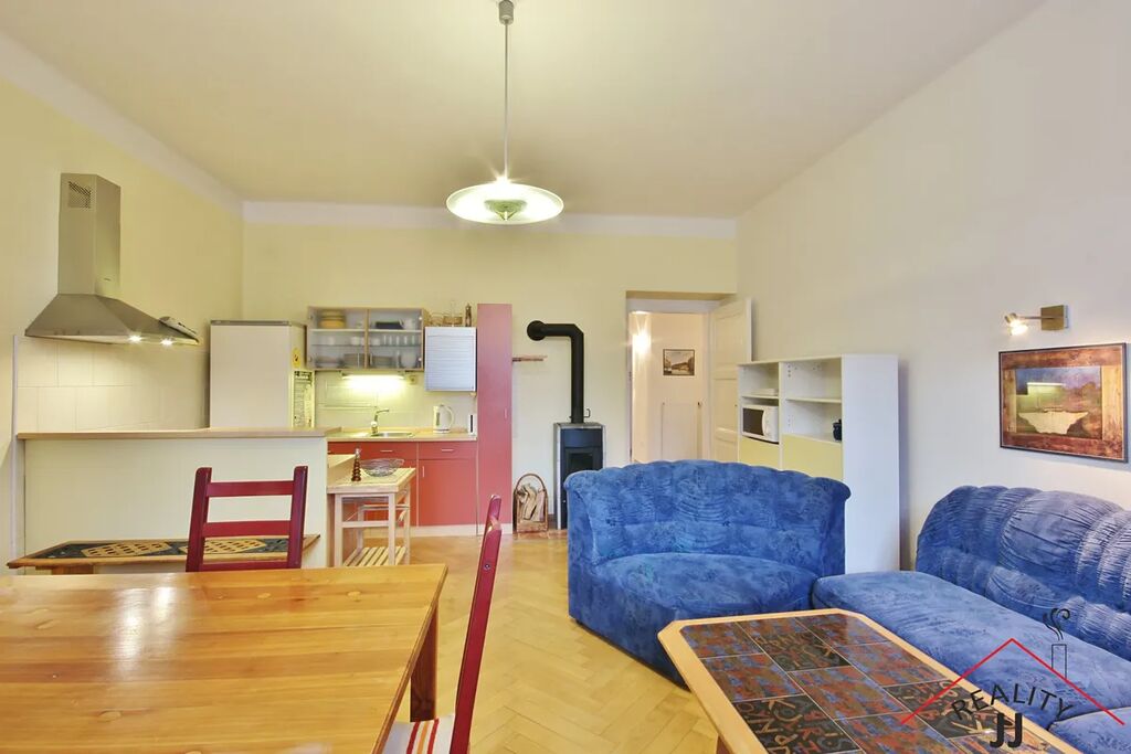 Byt o dispozici 3+kk a podlahové ploše 75 m2 se nachází ve zvýšeném přízemí. K dispozici je obývací pokoj s kuchyňským koutem vybaveným el. sporákem, lednicí a mrazákem, prostorná ložnice s dvoulůžkem a pracovním stolem, druhá malá ložnice s lůžkem 120 cm a šatní skříní, koupelna se sprchovým koutem, umyvadlem a pračkou se sušičkou, WC a komora.