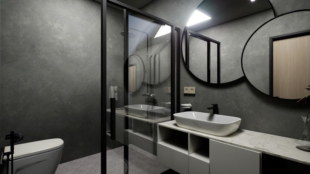 Dům o celkové rozloze 180 m2 má tři komfortní ložnice (28 m2, 28 m2 a 36 m2), každá s vlastní koupelnou a šatnou, dále moderní obývací prostor s kuchyní o velikosti 56 m2 a špičkovou chytrou domácnost s kamerovým systémem pro maximální komfort a bezpečí.