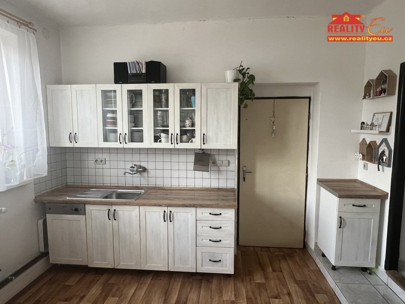 V prvním patře objektu se nachází bytová jednotka o dispozici 5+1 a podlahové výměře 110 m². Byt má vlastní, nezávislý vstup po bočním schodišti a je krom standartu vybaven i krbovými kamny a velkou terasou s plochou cca 15 x 5 m. Na terasu se vstupuje z obývacího pokoje. Bytové prostory, které vznikly z původních kanceláří mají malou koupelnu se sprchovým koutem a WC. V bytě jsou plastová okna a vytápění je řešeno plynovým kotlem s vlastním plynoměrem. Teplá voda je ohřívána plynovým průtokovým ohřívačem. Dům je zděný, se střešní krytinou z vlnitého eternitu. Elektřina a voda jsou do objektu přivedeny podružně z vedlejší stavby.