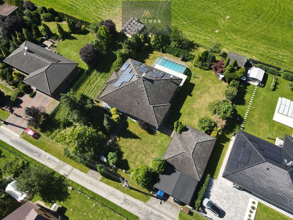 Uvnitř na vás čeká 180m2, prostorný obývací pokoj s dominantním krbem, kuchyní, třemi ložnicemi, šatnou, technickou místností a také praktickou prádelnou. Dům je zateplený a díky tepelnému čerpadlu, fotovoltaice a solárním panelům šetříte nejen peníze, ale i energii.