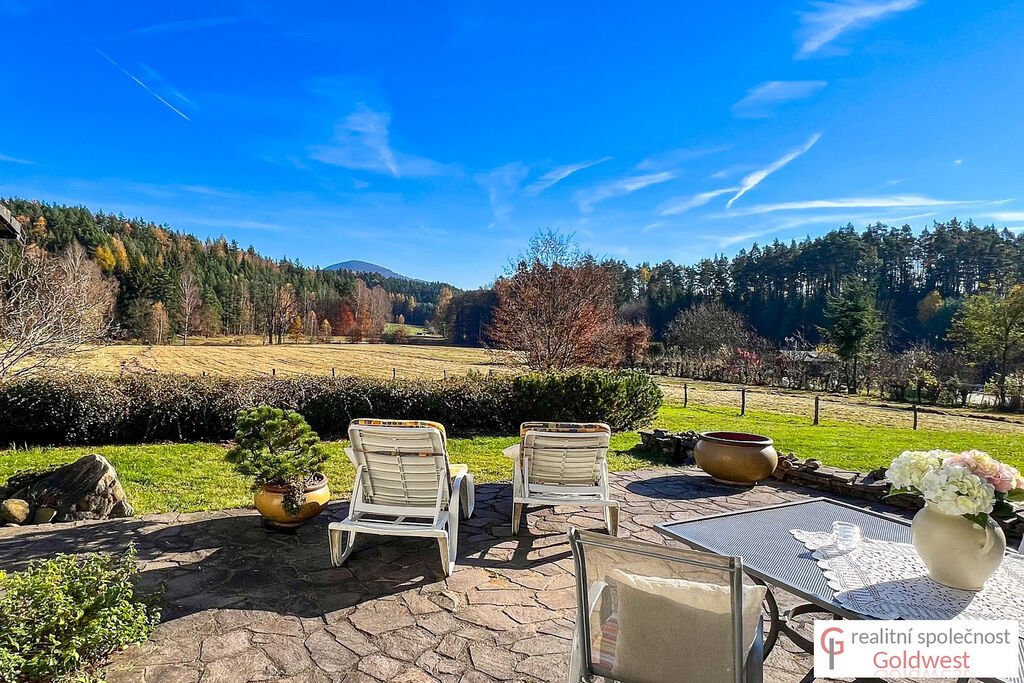 Stylová roubená chalupa uprostřed nádherné mystické přírody v oblíbené chráněné krajinné oblasti Lužických hor o dispozicí 7+1 s podlahovou plochou 210 m² s 5 koupelnami, kachlovými kamny, infrasaunou, garáží, terasou s úžasným panoramatickým výhledem na lesy a louky a nerušeným soukromím. To vše na pozemku o výměře 1 471 m² v malebné vísce Naděje, jen kousek od Cvikova.