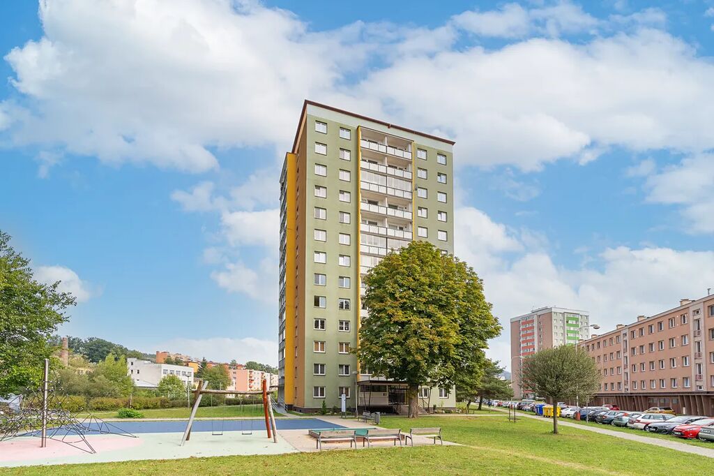 Výhled do zeleně a na dětské hřiště je velkou výhodou tohoto pěkného bytu. K nemovitosti náleží sklepní kóje. Parkování zajišťuje přilehlé parkoviště u domu.