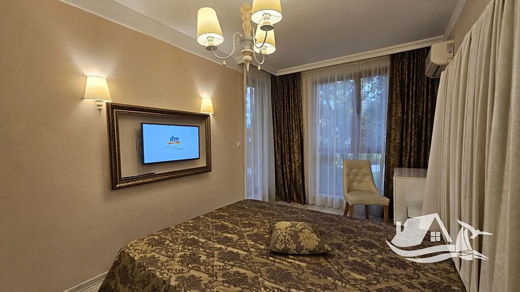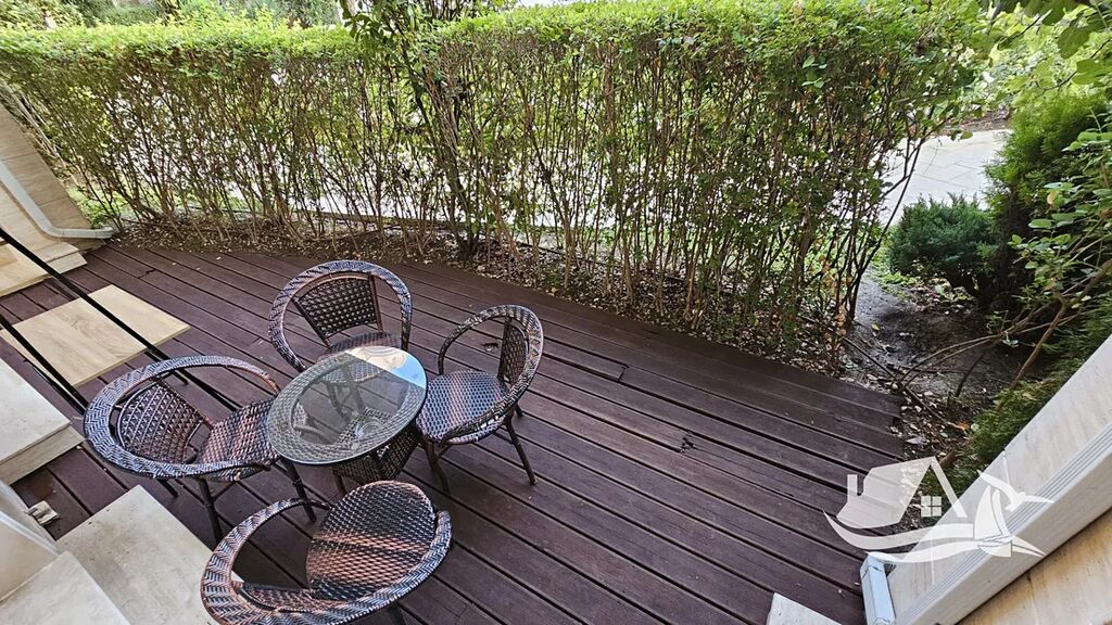 Pouhých 350 metrů od písčité pláže najdete jeden z nejpříjemnějších koutů Slunečného pobřeží. Blízko všeho, co potřebujete – supermarketů, trhů, kaváren, restaurací, zastávek MHD –, a přesto dost daleko od ruchu hlavní promenády.