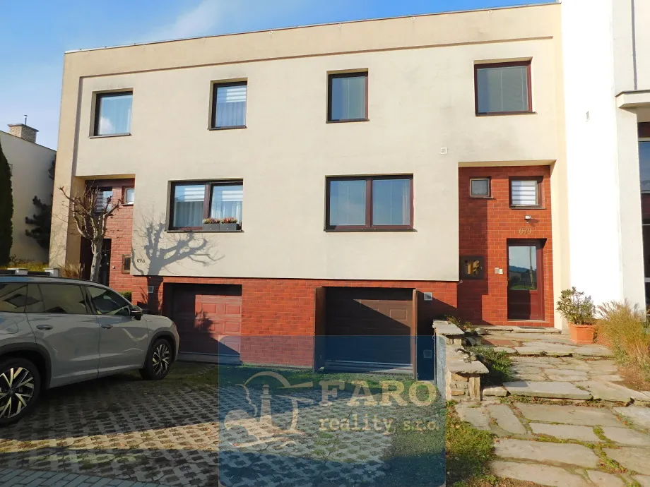 Exklusivně nabízíme k prodeji řadový, podsklepený RD o velikosti 6+1 s garáží ve Znojmě, v městské části Přimětice, dům o dvou nadzemních podlažích je podsklepený. Ze vstupní chodby je schodiště jak do sklepa, tak i do obou obytných podlaží. Dispozice 1.NP: kuchyň s jídelnou – 20m2 + spíž, samostatná toaleta s umývadlem, pokoj, obývací pokoj – 21m2 se vstupem na terasu – 12m2. Z prostorné terasy vede venkovní schodiště do okrasné zahrady s altánem. Zahrada je přístupná i z druhé strany pozemku po asfaltové komunikaci. Dispozice 2.NP: 4 pokoje – 18,14,12,10 m2, koupelna se sprchovým koutem, toaletou a bidetem. V mezipatře mezi 1. a 2.NP je sklad – 12m2. Zahrada má nové oplocení z hliníkových panelů, skýtá soukromí a je ideální pro odpočinek celé rodiny. Na zahradu je také vstup ze sklepní části, kde je dílna – 14m2, prádelna, samostatná toaleta a garáž. Konstrukce budovy je z pálených bloků – šířka 44cm, zateplení 80 mm, vytápění je ústřední plynové (nový kotel zn.Vaillant), ohřev vody el. boilerem (také nový), 230V, 400V, optický internet, vodovod, veřejná kanalizace. V garáži je parkování pro jedno auto, před domem další parkovací místo. Městská část Přimětice nabízí veškerou občanskou vybavenost. Je zde základní škola, mateřská školka, obchody, restaurace, nemocnice Znojmo cca 4km, centrum města Znojma cca 5km. Dům je plně funkční a ihned k nastěhování. Uvedená cena je včetně provize RK.