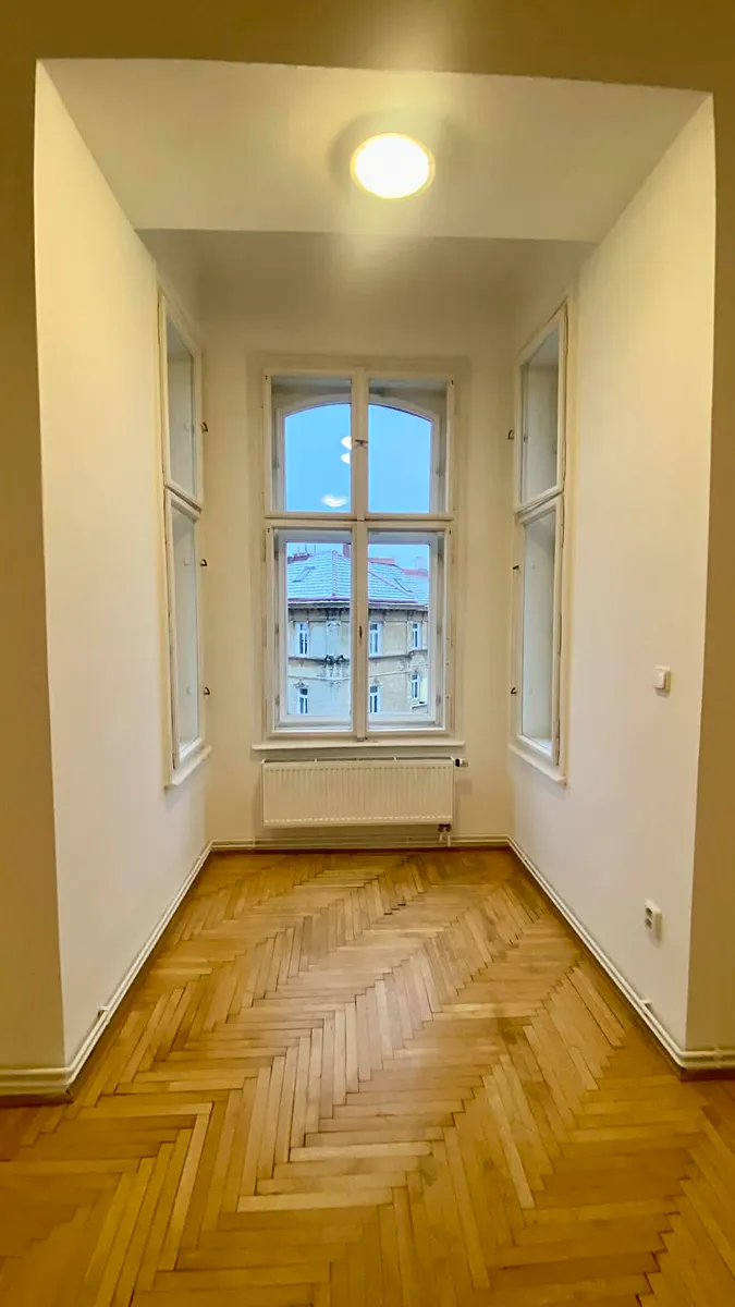 Byt je nyní po rekonstrukci, nové spotřebiče v kuchyni, je celý nově vymalován na bílo, renovované původní velké dvoukřídlé dveře.