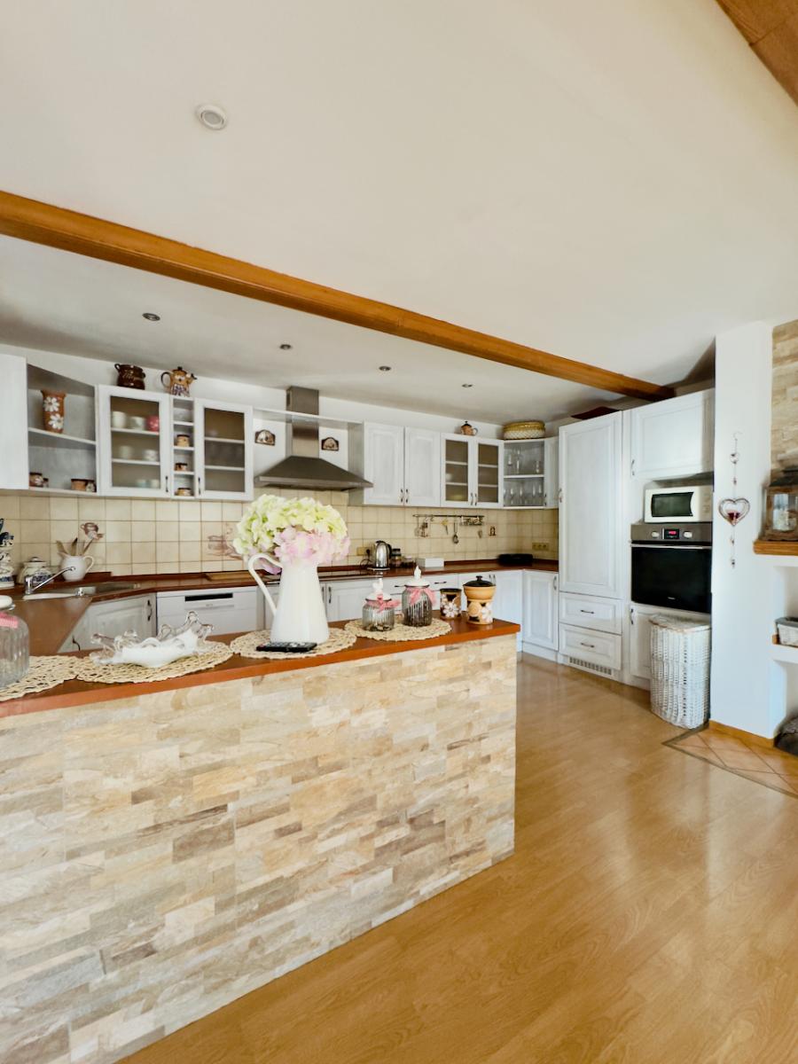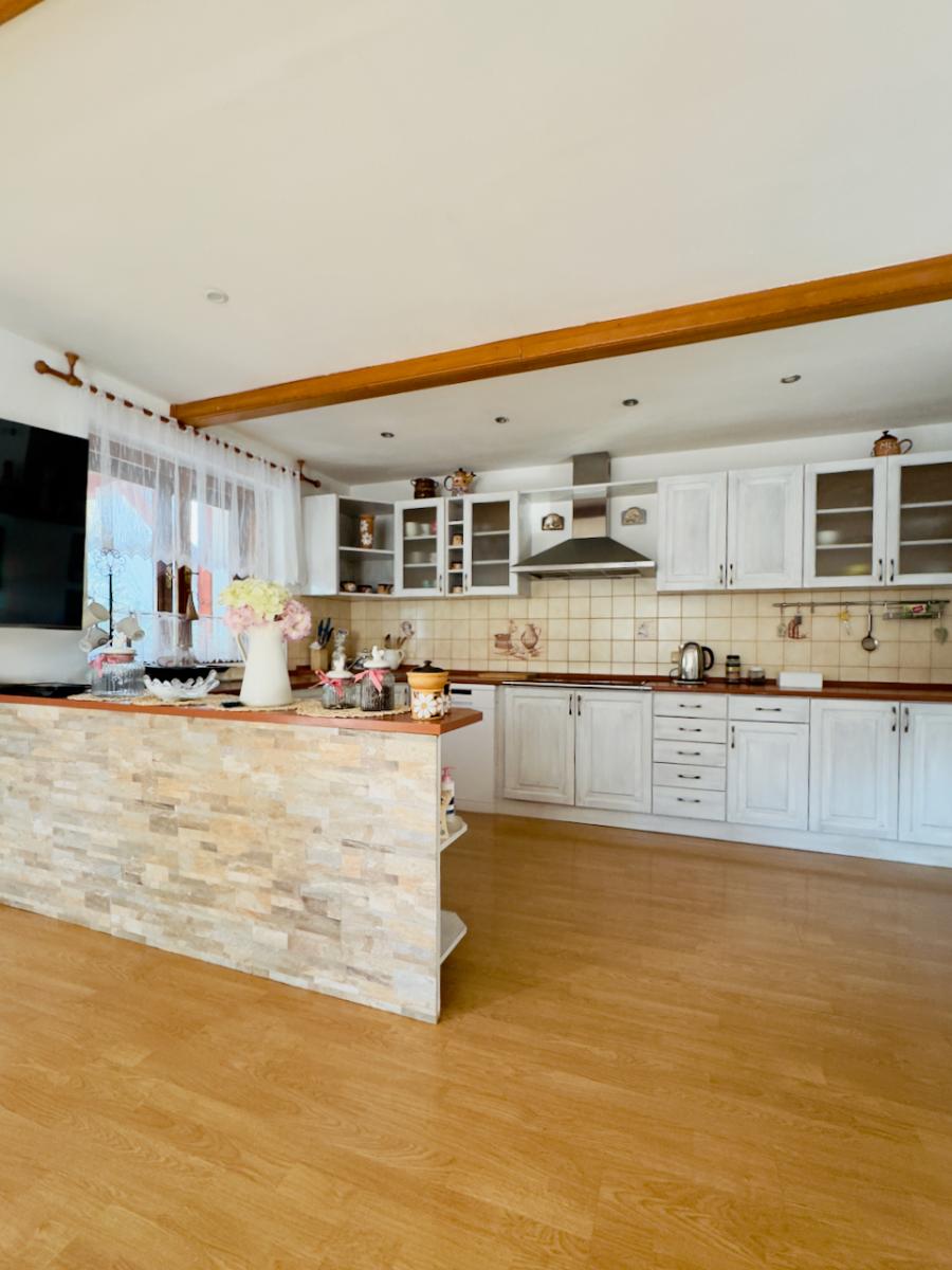 Obytná plocha: 267 m Pozemek: 2 776 m (zahrada, zastavěná plocha) Vytápění: tepelné čerpadlo vzduch-voda BOSCH + krbová kamna Ohřev vody: elektrický bojler + napojení na ÚT Fasáda: zateplená Okna: dřevěná s dvojskly Vybavení: 2 koupelny, 2 WC, 2 kuchyně Garáž: pro 1 automobil Terasa: s pergolou