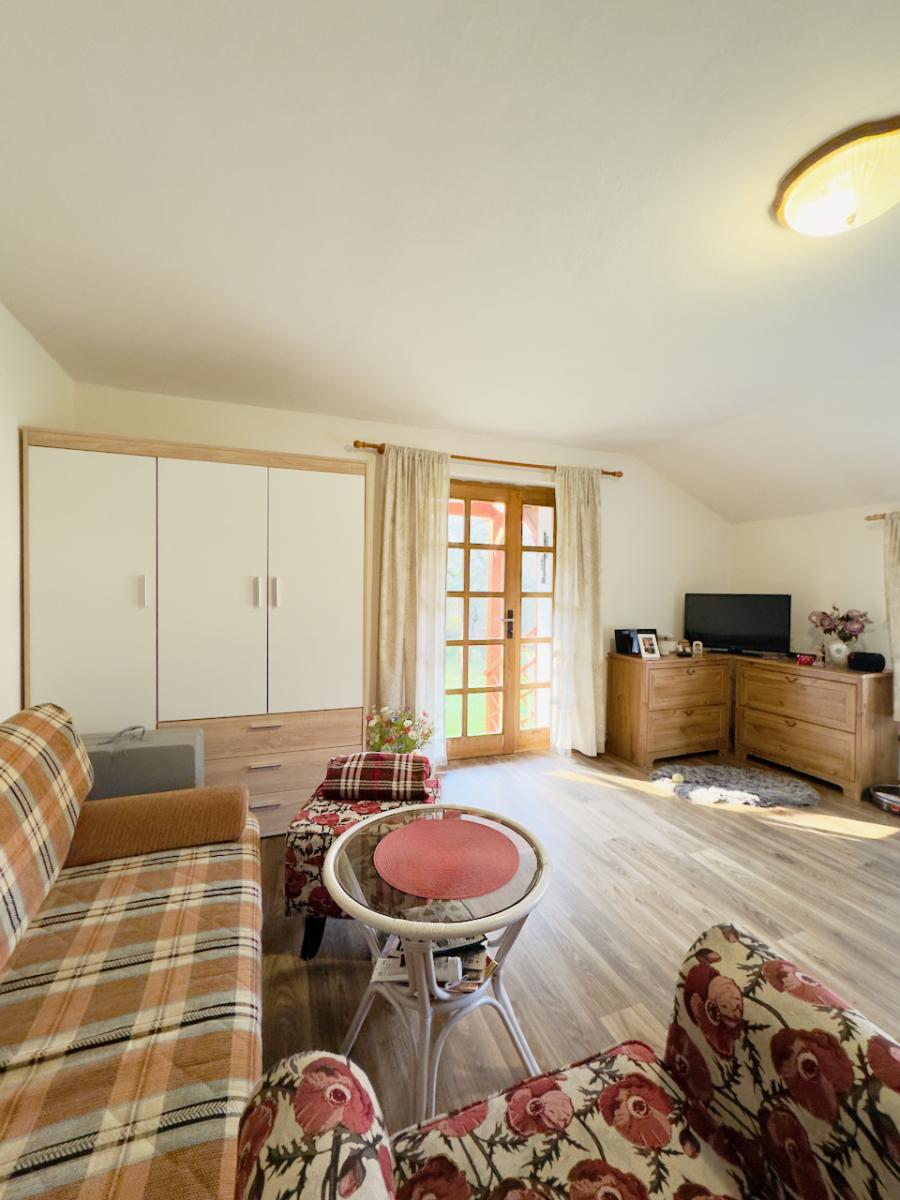 První podlaží: Hlavní byt: prostorná kuchyň s krbovými kamny, jídelnou a výstupem na terasu (pod terasou je skladovací místnost), ložnice, šatna, velká koupelna, WC, vstupní chodba a chodba se schodištěm do druhého podlaží Samostatný byt 1+kk: pokoj s kuchyňským koutem, koupelna s WC, vlastní vstup Garáž pro 1 automobil Technická místnost