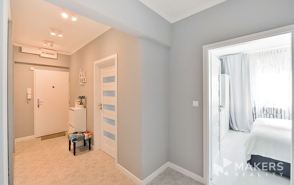 Moderní stylový byt 3+kk o ploše 63m2 se nachází ve druhém nadzemním podlaží cihlového domu s výhledem do zeleně. Interiér tvoří obývací pokoj s krásnou plně vybavenou kuchyní, která je zařízená včetně vestavěných sklokeramické varné desky s horkovzdušnou troubou a digestoří, lednicí, mikrovlnné trouby a myčky na nádobí. K dispozici je kuchyňský stůl se židlemi, obývací stěna s TV a pohovka. V krásně zařízené ložnici je manželská postel s nočními stolky. Ve druhém pokoji je postel a malá pohovka. Světlá koupelna s vanou. Toaleta je samostatná. K dispozici je pračka. V ceně pronájmu je sklep o rozloze 2m2.