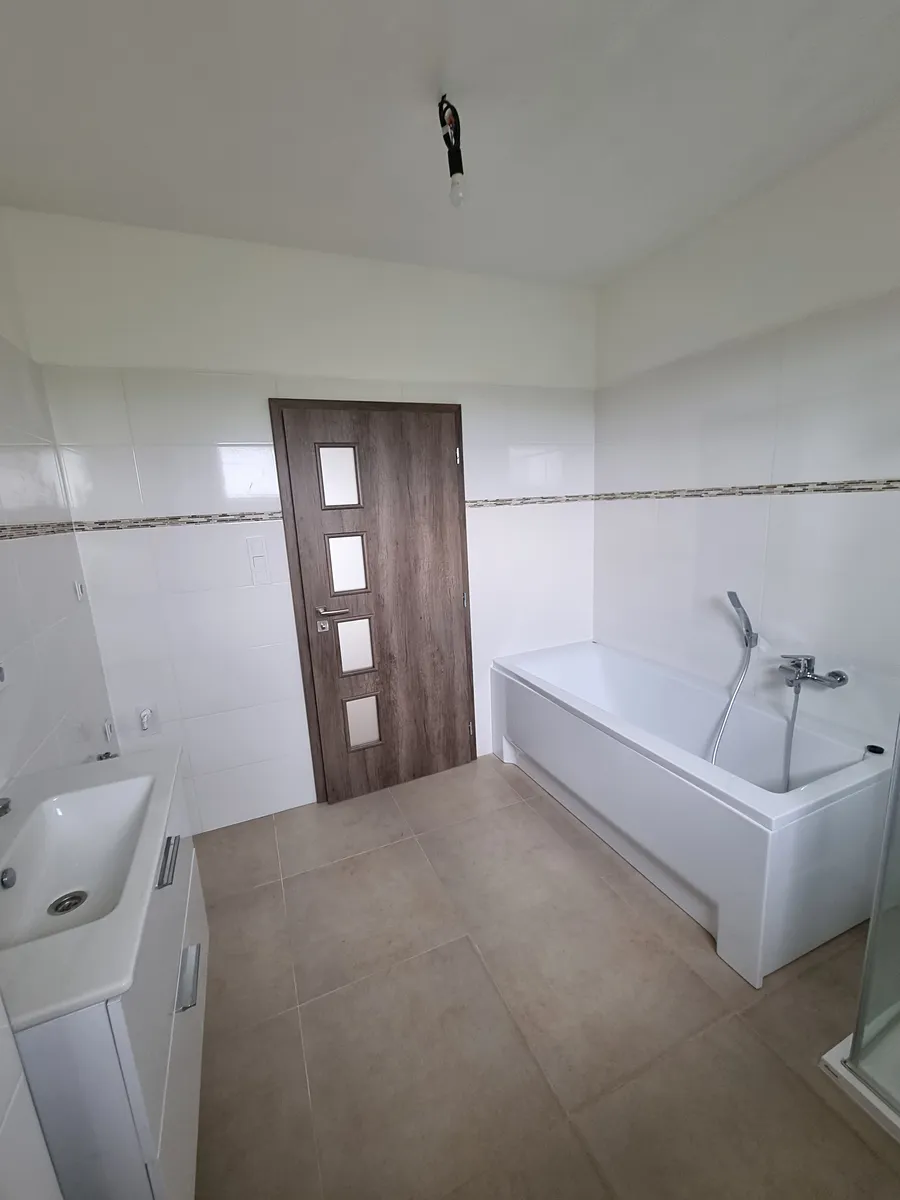 Dispozice přízemí domu je tvořena vstupní předsíní, koupelnou, dvěma samostatnými pokoji a dále prostorným obývacím pokojem s kuchyňským koutem. Z obývacího pokoje je možné vstoupit na terasu francouzským oknem. V patře domu se nachází dvě velmi prostorné ložnice, samostatné WC, technická místnost a koupelna prosvětlená střešním oknem.