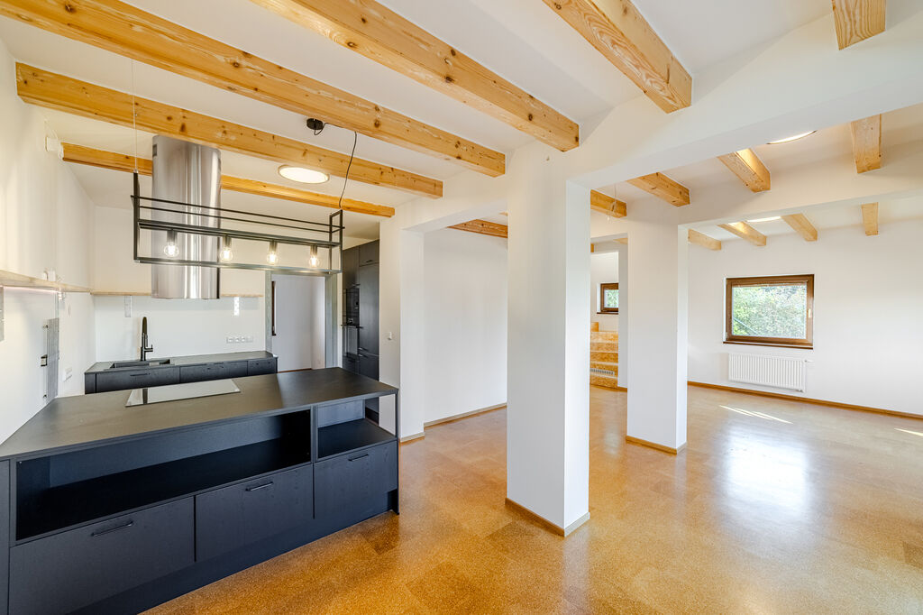 • Obývací pokoj s plně vybaveným kuchyňským koutem a vstupem na terasu