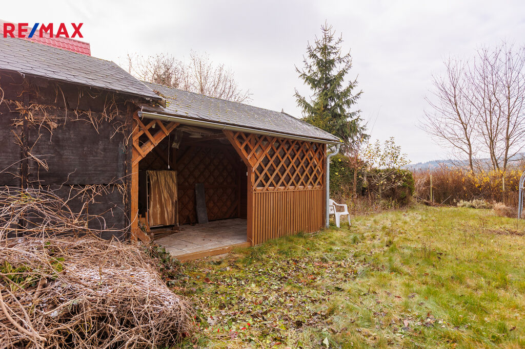 Na lehce udržitelném pozemku o výměře 674 m² naleznete kryté venkovní posezení pro grilovací večery, uzavíratelnou dřevěnou kůlnu na veškeré zahradní nářadí a plechovou garáž na ustájení Vašeho vozu.