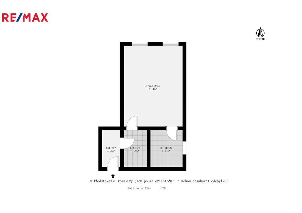 Jedná se o byt původně veliký 74 m2, který aktuálně je rozdělen do 3 bytových jednotek typu 1+1. Každá bytová jednotka disponuje vlastní koupelnou, kuchyní a obývacím pokojem spojeným s ložnici.