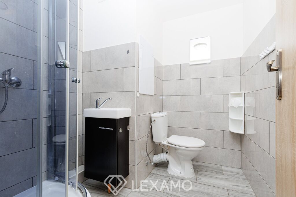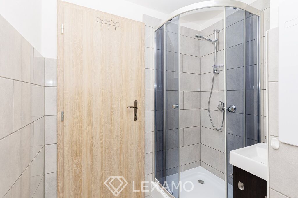 Byt se skládá z prostorného obývacího pokoje, který je dostatečně světlý a nabízí pohodlný prostor pro odpočinek i každodenní život. Kuchyň je vybavena skříňkami a sporákem na plyn. V koupelně najdeme sprchový kout a toaletu. K bytu náleží také praktický sklep, který poskytuje další úložný prostor.