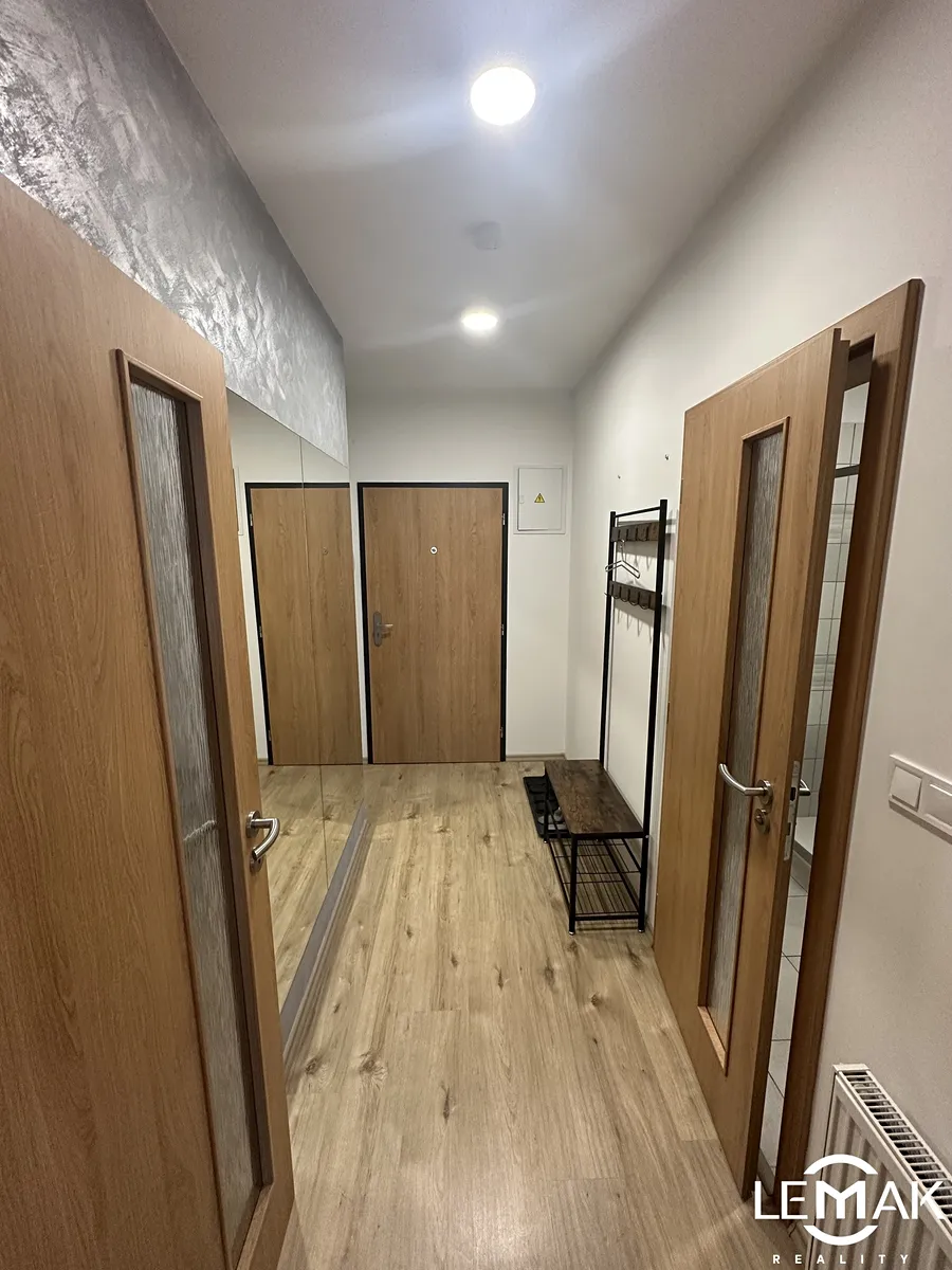 V koupelně se nachází sprchový kout, toaleta a otopný žebřík. Celý byt je navržen s důrazem na pohodlí a moderní design – v chodbě byla použita stylová šedá stěrka, v ložnici pak elegantní kamenný obklad. Terasa prošla nedávnou rekonstrukcí a byla osazena novou dlažbou.