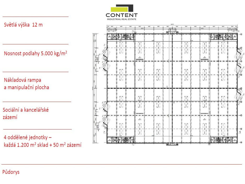 Cena nájmu EUR 6,80 za sklad a EUR 9,00 za kanceláře + energie a služby.