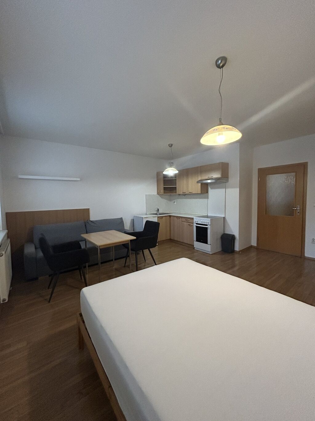 Nabízíme k pronájmu hezký, zařízený byt o rozloze 32 m2, který se nachází ve 4.patře cihlového domu s výtahem. Byt je tvořen předsíní se skříněmi, koupelnou s vanou, WC a pračkou a hlavní obytnou místností s kuchyňským koutem, sedačkou, postelí a skříněmi - viz. foto. Poplatky 3.000,- Kč ( voda, topení, společné prostory, výtah, komunální odpad atd.) + elektřina 700,- Kč se převádí na nájemníka. Kauce 20.000,- Kč. Provize RK. K nastěhování 1.1.2026. Parkování u domu pouze pro obyvatele domů nebo v ulici na modré zóně. Pro bližší informace kontaktujte makléře.