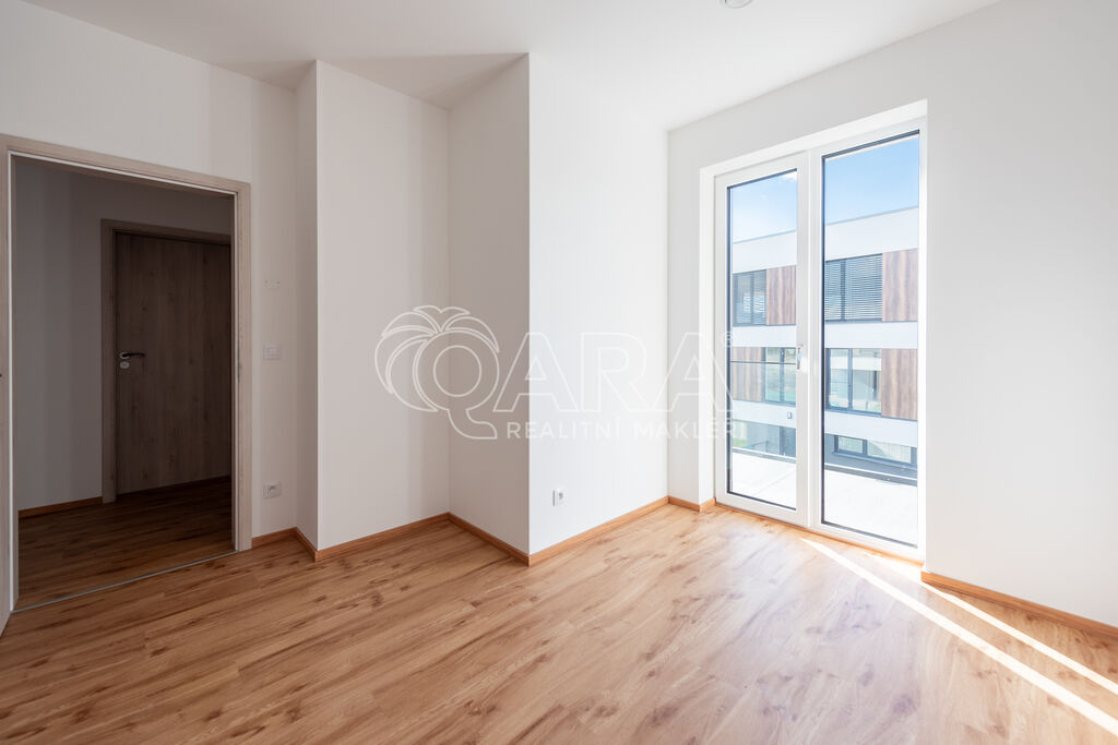 Byt je vybaven moderní kuchyňskou linkou se spotřebiči (varná deska, trouba, myčka, lednice s mrazákem), dvěma vestavěnými skříněmi v předsíni, vinylovými podlahami, předokenními žaluziemi a systémem rekuperace. V bytě je rozveden vysokorychlostní internet.