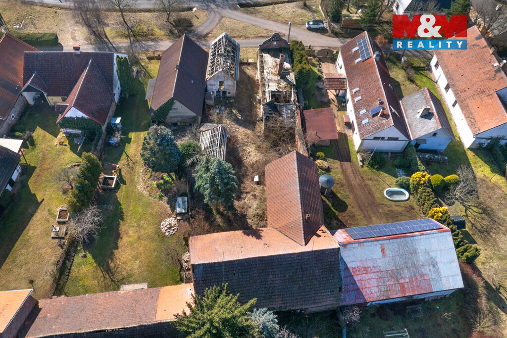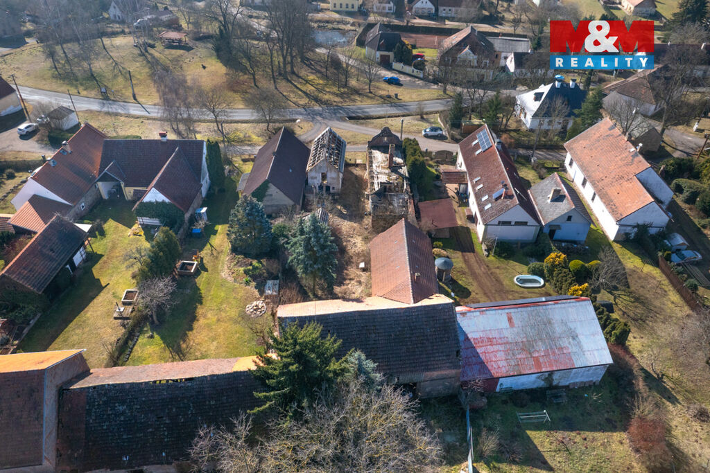 K prodeji je zde pozemek o velikosti 856 m2, na kterém stojí dva rodinné domy s dvěma čísly popisnými a velká stodola. Oba domy jsou ve špatném stavu a jsou tak určeny buď k celkové rekonstrukci anebo přímo k demolici. Demoliční výměry na oba domy a projektová dokumentace na nový dům jsou k dispozici.