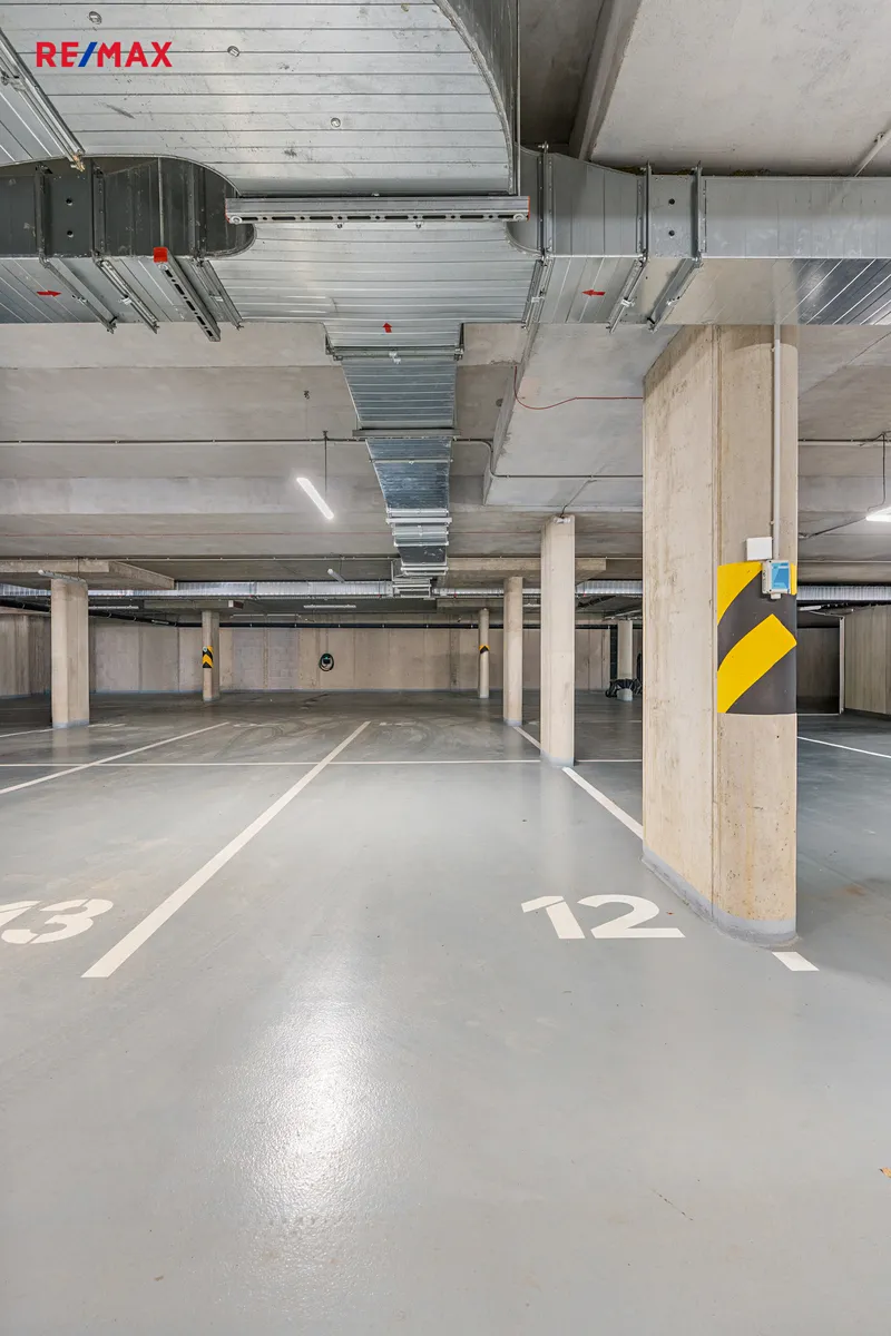 Projekt nabízí dostatek parkovacích míst, kolárnu a praktickou umývárnu v prostoru garáží.