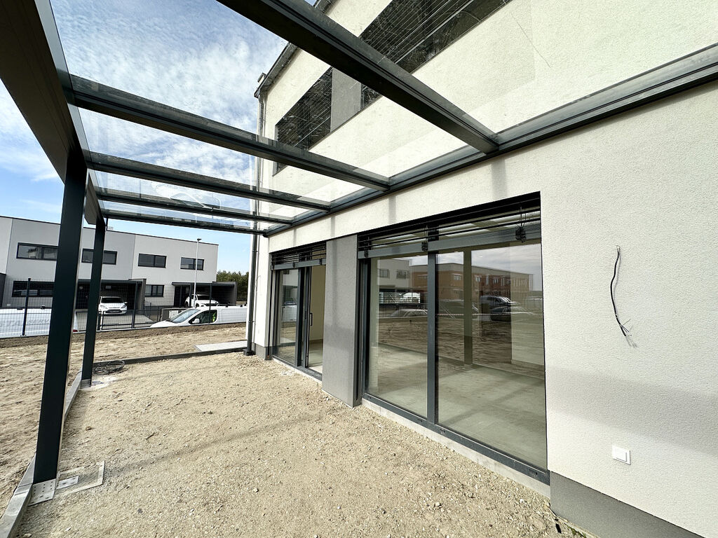 Zasklená pergola s terasou orientovanou na jihozápad, ideální pro letní večery s rodinou nebo přáteli.