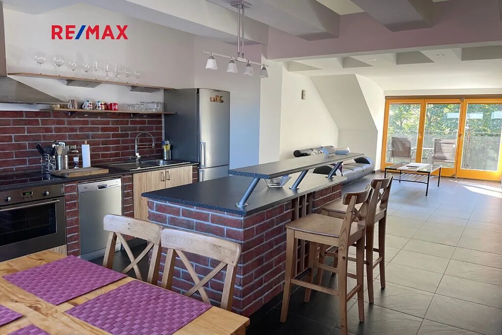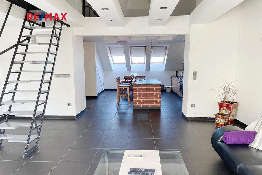 Dispozici bytu tvoří mimořádně prostorný obývací pokoj o rozloze cca 70 m² s podlahovým vytápěním a klimatizací, samostatná ložnice, koupelna a WC. V podkroví je další prosto vhodný třeba jako pracovna. K bytu náleží také balkon vhodný k odpočinku. Nájemníkům je dále k dispozici venkovní posezení s grilem, ideální pro relaxaci a společné chvíle.