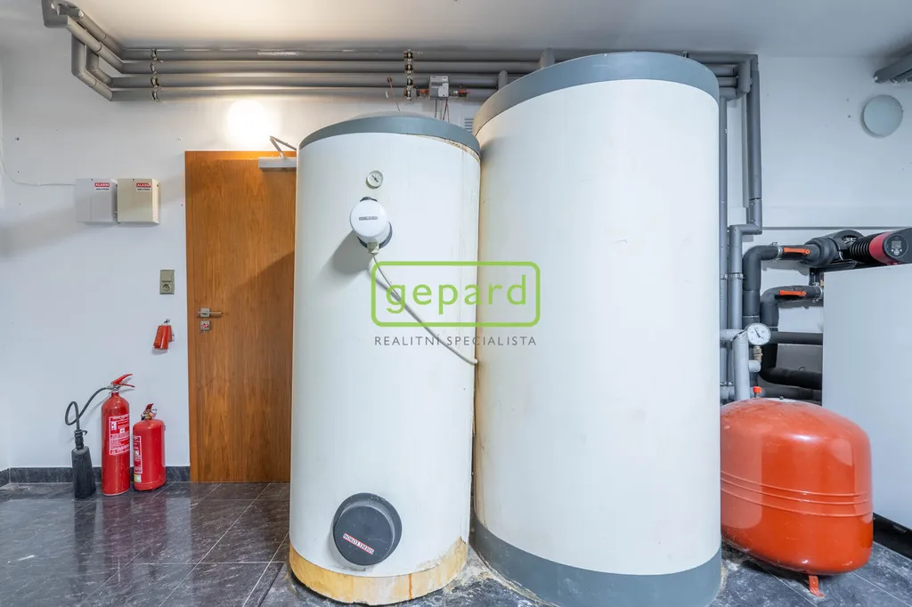 Z hlediska nadstandardního vybavení domu jsou například podlahy, schodiště i obklady dvou krbů jsou ze špičkové velkoformátové dlažby Iris Ceramica. Samostatný byt v přízemí má v obývacím pokoji a ložnici dřevěné parkety.
