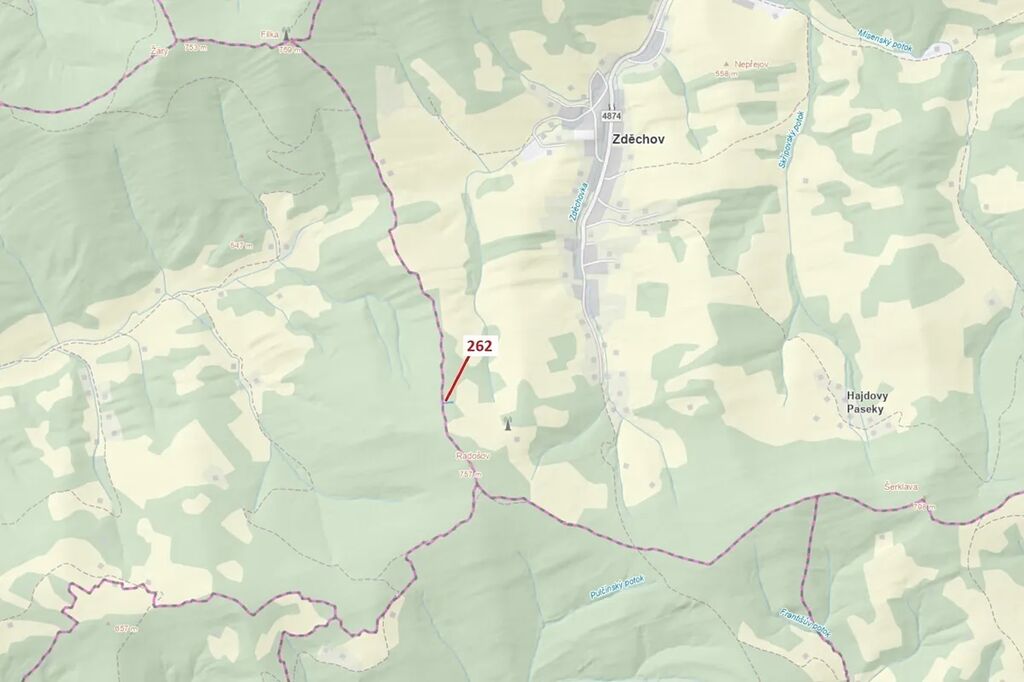 Lesní pozemek o výměře 273 m2, parcelní číslo 262, podíl 1/1, katastrální území Zděchov, obec Zděchov, obec s rozšířenou působností Vsetín, okres Vsetín, Zlínský kraj.