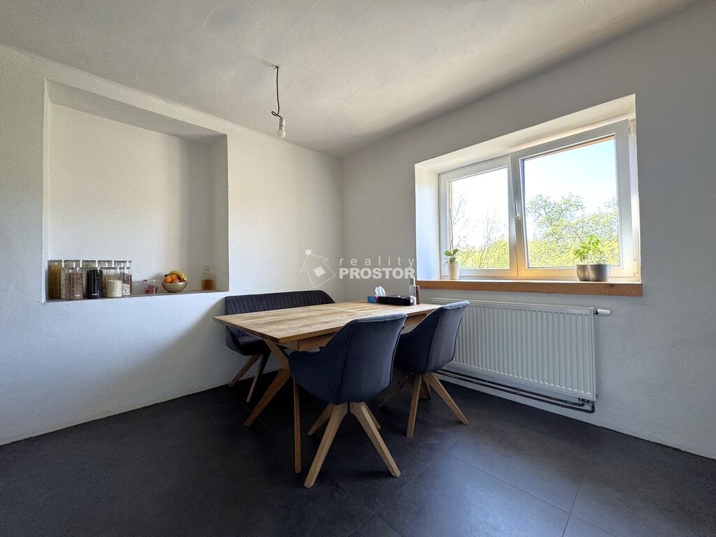 Exkluzivně nabízíme prodej rodinného domu o celkové dispozici 4+1, se zastavěnou plochou 103 m2, na pozemku 626m2 a další zahradou 316m2, celkem 942m2, v obci Neuměřice, okr. Kladno. Tento velmi vkusně zmodernizovaný rodinný dům prošel v roce 2018 kompletní rekonstrukcí včetně rozvodů, odpadů i celého interiéru. Nabízí slunný a prostorný obývací pokoj s přípravou pro francouzská okna vedoucí na terasu. Kvalitní kamenný obklad v kombinaci s odkrytými trámy dodává prostoru moderní a nadčasovou atmosféru. Masivní dřevěné schodiště vede do dvou dalších pokojů, aktuálně využívaných jako herna a dětský pokoj, přičemž jeden z nich je částečně otevřený do obývací části.