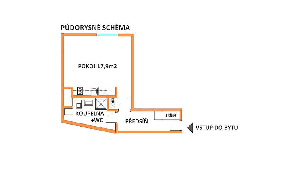 Výměra 32 m2 zahrnuje byt + komoru na stejném patře, která je jen pro tento byt.
