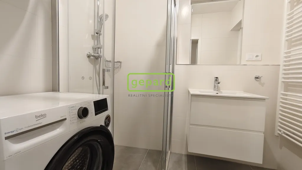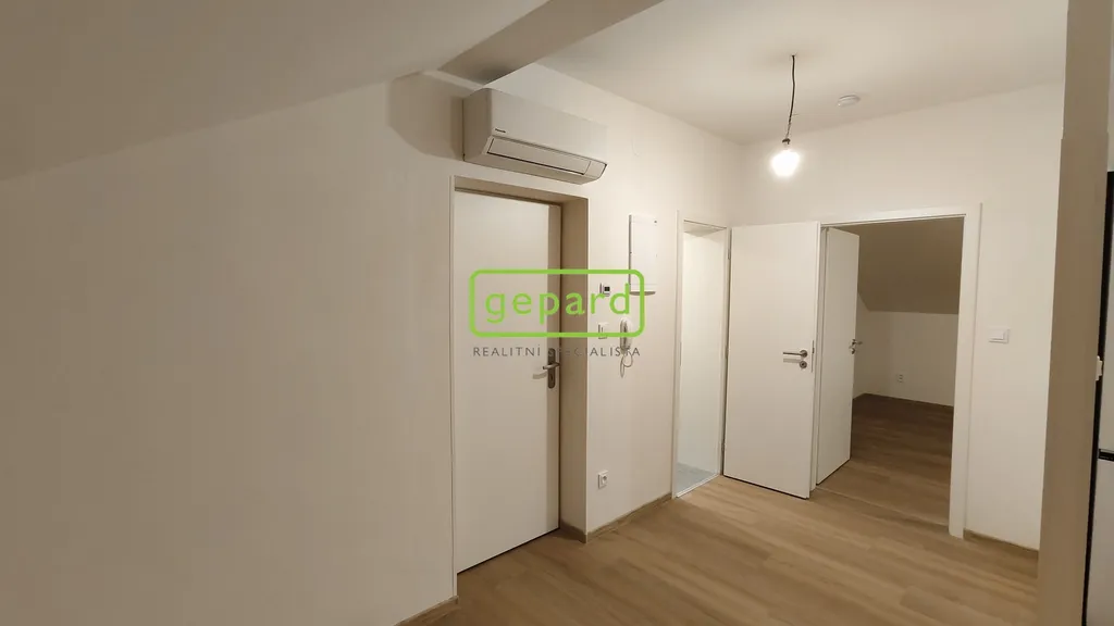Podkrovní byt je umístěný ve 2.patře a je tvořen zádveřím, koupelnou se sprchou a WC, obývacím pokojem s kuchyňským koutem a ložnicí. Je vybaven kuchyňskou linkou se spotřebiči (indukční varná deska, horkovzdušná elektrická trouba, digestoř, mikrovlnná trouba, lednice s mrazákem, myčka) a pračkou. Vytápění bytu elektrickým podlahovým topením, ohřev vody elektrickým boilerem. V bytě je klimatizace.