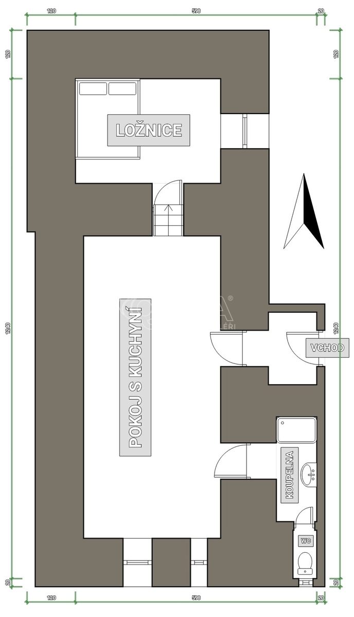 Vytápění je řešeno klimatizací, nebo el. přímotopy. Ohřev vody elektrickým bojlerem.