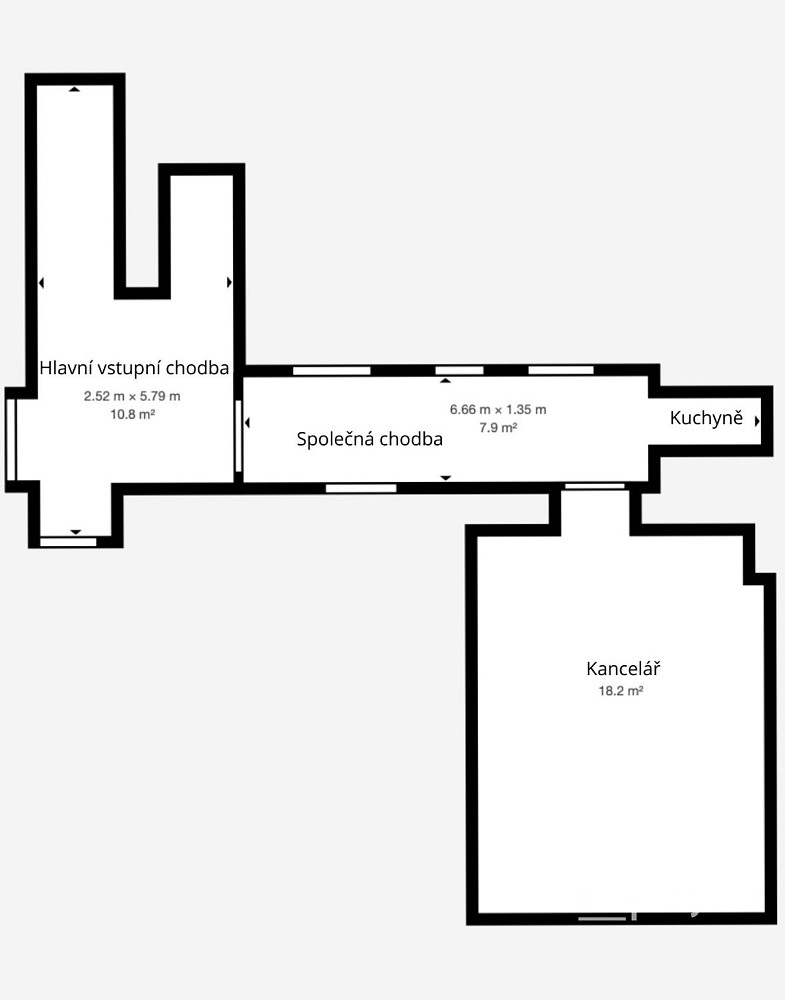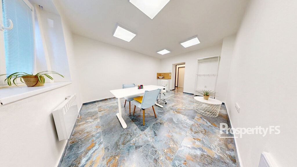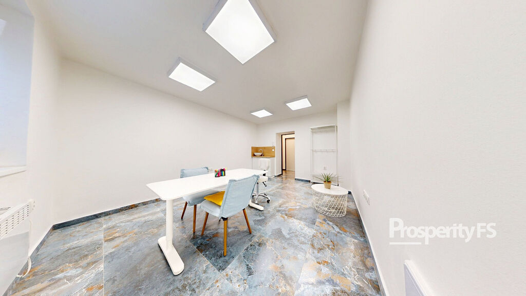 Součástí jsou i prostorné společné prostory o velikosti 24,4 m², kde najdete vše, co potřebujete pro komfortní provoz: lednici, kávovar, společné toalety a šatnu. Vaši klienti se k vám dostanou snadno a pohodlně díky vlastnímu telefonu propojenému se zvonkem u hlavního vchodu. Vchod se nachází u centra města na hlavní ulici Masarykova naproti fitness centru "Gymit.. "