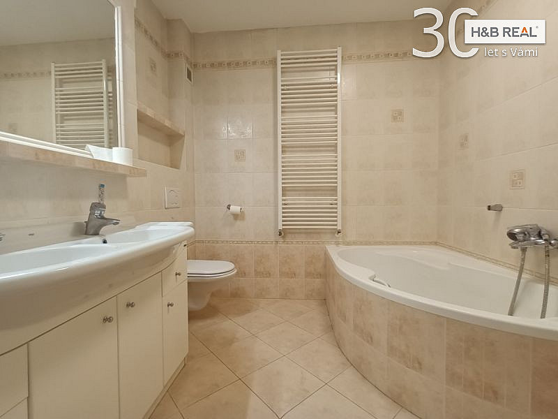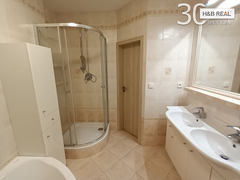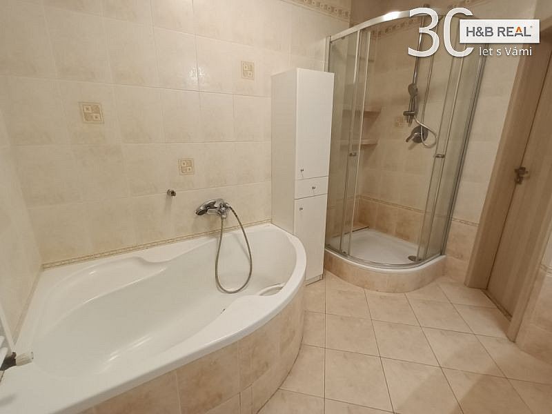 Pronájem prostorného a vzdušného bytu 3+1, který je umístěn v 1. patře řadového rodinného domu. Byt má samostatný vlastní přístup z chodby. Byt je po nedávno provedené rekonstrukci. Celková výměra je 89 m². Navíc je zde ještě k dispozici cca 30 m² v suterénu, kde je prádelna, sušárna a 2 sklady. Kuchyně je vybavena sklokeramickou deskou, elektrickou troubou, myčkou, ledničkou. V koupelně se 2 umyvadly si můžete vybrat mezi prostorným sprchovým koutem nebo relaxem ve vaně. Z balkonu přístupného z obýváku budete mít výhled do zahrady, kterou též můžete využívat spolu s nájemníky z bytu v přízemí. Topení i ohřev vody je plynovým kotlem. PENB nebyl dodán, proto uvádíme G, nicméně jedná se o řadový rodinný dům se sousedy z obou stran. Finanční podmínky: Měsíční nájemné: 18.000 Kč, zálohy za elektřinu a vodu: 3.000 - 4.000 Kč podle počtu osob. Plyn a internet si nájemce přihlásí sám na sebe. Vratná jistota 1-2 násobek měsíčního nájmu, provize RK: 1-násobek měsíčního nájmu + dph. Velmi dobře přístupná lokalita s parkováním v garáži v přízemí nebo v odstavném pruhu na silnici před domem. Vzdálenosti: prodejna potravin 200 m, ZŠ 900 m, železniční nádraží 1,4 km, dálnice D1 5 km. Byt je k dispozici ihned. Dopln. info: plus služby