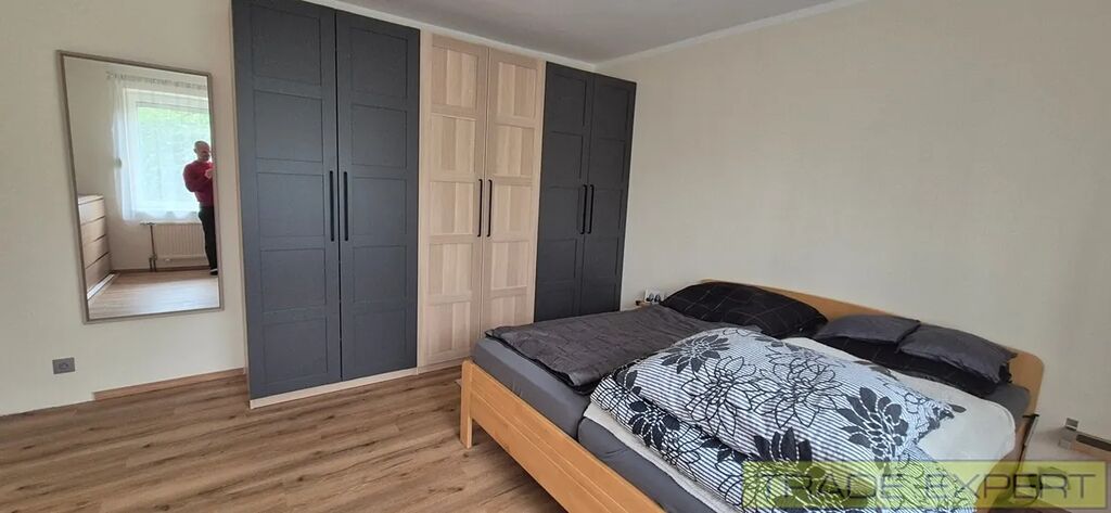 Prodej RD 5+kk, s užitnou plochou 236 m2, Korno, okr. Beroun. Prostorný rodinný dům o výměře 236 m2, dispozičně 5+kk se nachází na okraji Korno v krásném a klidném místě. Plocha pozemku je 1063 m2 Dispozice: vstup do zádveří a následně do haly. Z haly vstup do tří pokojů, kuchyně a prostorného obývacího pokoje s krbovými kamny a vstupem na terasu. . V podkroví se nachází další samostatná obytná místnost a dalších 200 m2 půdy je možné adaptovat k bydlení. Jedna garáž (30m2) je integrovaná v domě, druhá samostatná garáž 15 m2 se nachází na pozemku vedle domu, Dům byl kolaudován v roce 1994. Dům je zateplený, má vlastní studnu, a je připojen na kanalizaci. Vytápění: elektrokotel + krbová kamna. Kuchyň je osazena spotřebiči Siemens. Vzrostlá a udržovaná zahrada, ohraničení pozemku zdí, bazén se slanou vodou 7x3x1.3 metru. na terase je nově umístěná pergola. Parkovací místa pro 5 aut, brána na DO, předokenní rolety. Podlahy: předsíň, koupelna a hala - keramické dlažby, 3 pokoje lepený vinyl, obyvací pokoj lakované parkety. Možno přenechat včetně nábytku. V okolí domu je krásná příroda, 2 km od Karlštejna, 10 km od Berouna na nájezdu na D5. 25 min jízdy autem od Prahy. Dům je možné financovat hypotečním úvěrem.