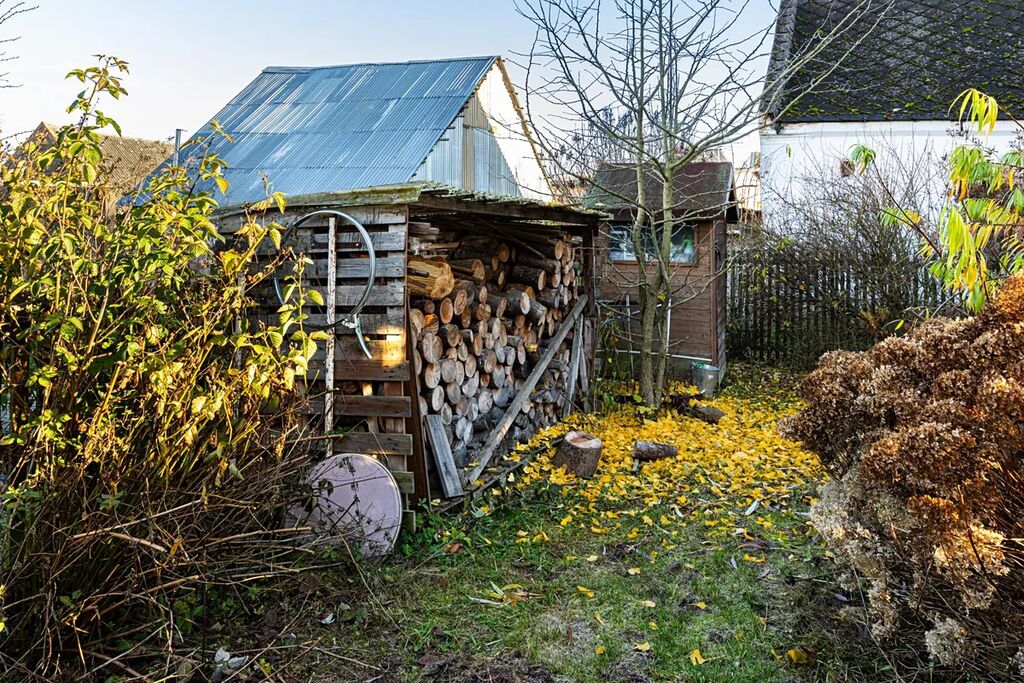Na pozemku stojí také dřevěná chatka pro přespání, která je skvělá jako hostinský domek, dětský domek nebo prostor pro návštěvy.
