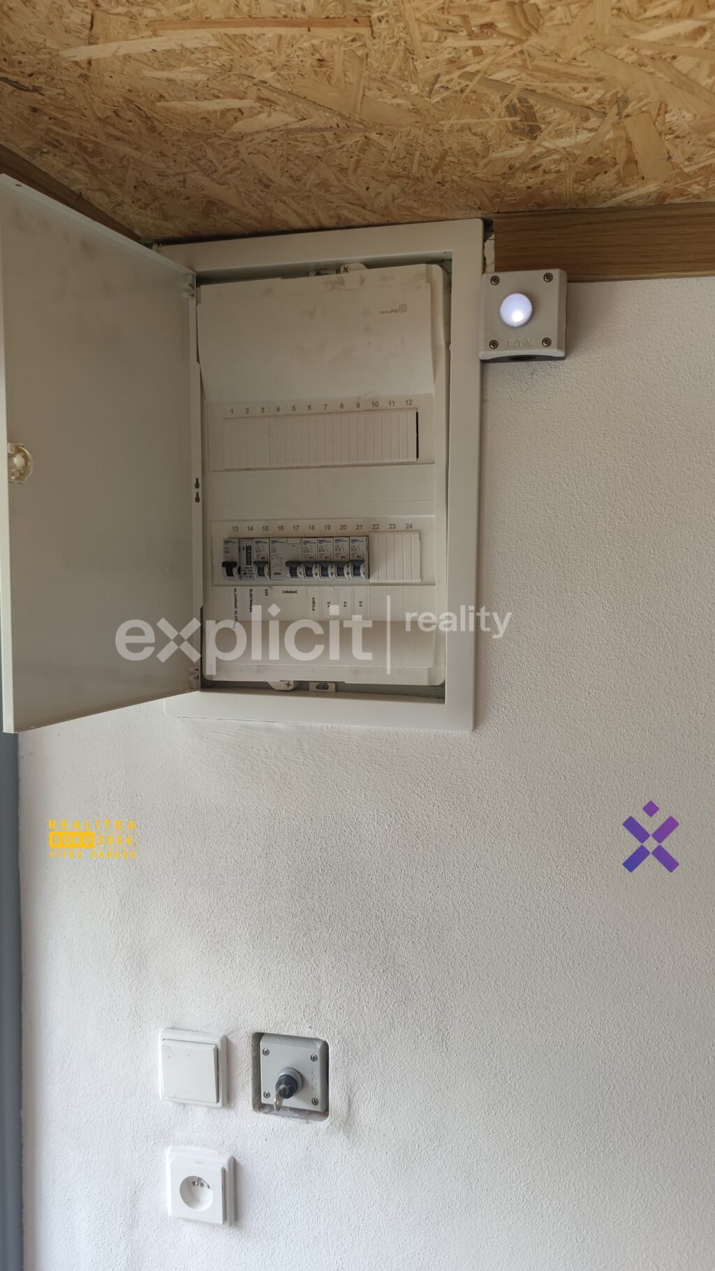 Na nových zdech o tloušťce 20 cm je vyvedeno několik zásuvek na 230V.